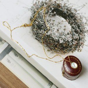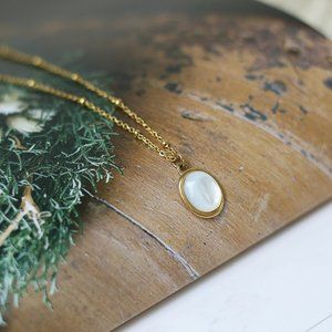 NEW 18K Gold Plated Vintage Retro Mother of Pearl Lolita Oval Pendant Necklace