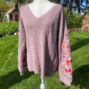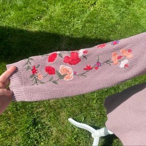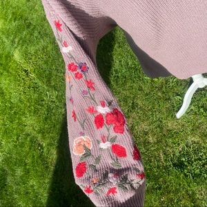 ❌sold mercari❌ American eagle mauve sweater embroidered flowers sleeves V neck
