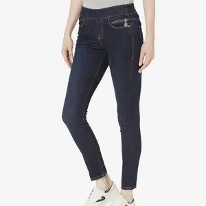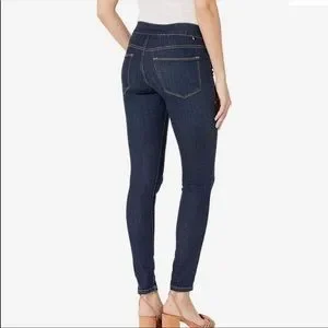 Hilfiger slimming pull on skinny Jean. Sits slightly above the waist. Lifts and shapes curves. Zipper on side pocket with Tommy logo. Plus size 22W