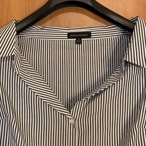 Banana republic off-the-shoulder striped long-sleeve button-down shirt