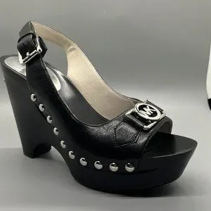 Michael Kors Black Leather Studded Platform Sandals