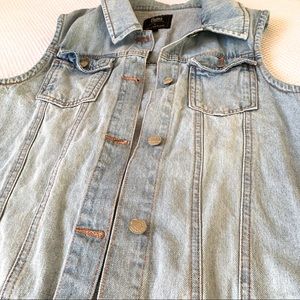 Cotton On mid blue denim vest. Size large and is fitted. For an oversized look this vest is best for size small/8. Layer up for winter or throw over a cami or tshirt when it’s warmer. EUC.