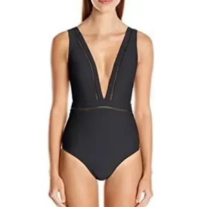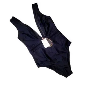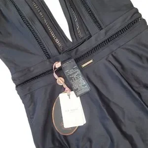 NEW WITH TAGS - TED BAKER - POINTELLE DEEP V Plunge One Piece Swimsuit In Black. Ted Baker Size 1 Which is a US size 4. Excellent NEW WITH TAGS condition. Smoke/ Pet Free Environment. Bundle purchases to save greatly on shipping. ( #1/4/100)