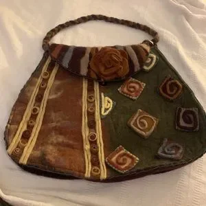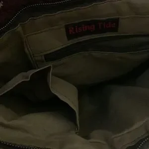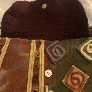 NEW Anthropologie Rising Tide handmade wool purse with cotton lining, zipper and magnetic snap closure, inside has one zippered pocket and one slip pocket for glasses or phone. Measures approx 12”x17”x2” Photos do not do justice to the detail on this bag!