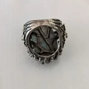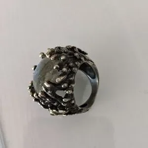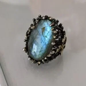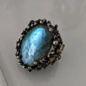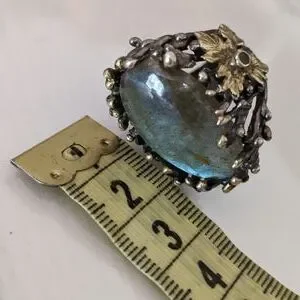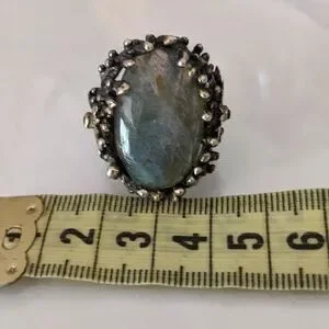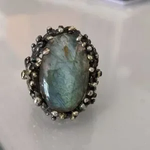 Artisan ring, size 7, silver platted, stone Labradorite, size apx. 3x2 cm