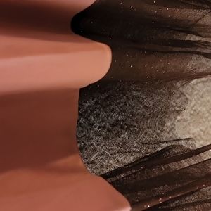 Sparkly tulle overlay on rose slip with additional sharkbite tulle hem.