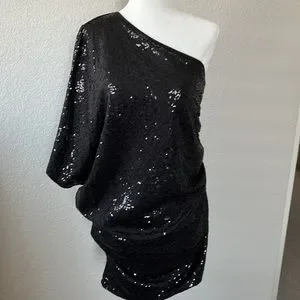 🌺💜Absolutely gorgeous Guess by Marciano mini sequins dress. One shoulder, stretchy fabric, mini, black on black sequins, hidden size zipper. 💜🌺