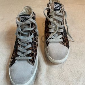 Golden Goose Mid Star Leopard-Print Suede with Black Leather Strip