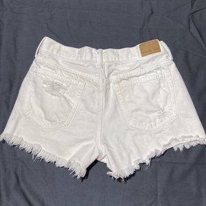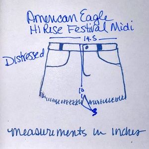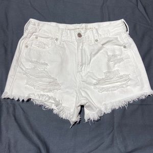 American Eagle Hi-Rise Festival MIDI Distressed White Shorts.