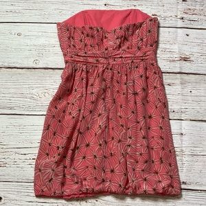 MILLY of New York Strapless Coral Print Bubble Hem Dress Sz 6