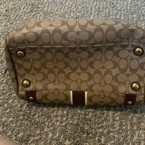Authentic Coach bag, used in fair condition. Pictures of all inside pockets;makeup stains and some daily use stains as well, I believe it can be hand washed