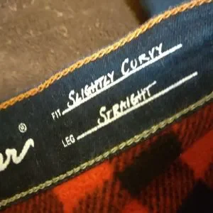 Nice and warm Eddie Bauer fully fleece lined jeans. Mid-rise, dark ocean blue color, fleece inside is a red plaid. Fit is slightly curvey, but straight legged. See model photo for fit (even though those aren't quite the same jeans, it's the closest picture I could find). This last pair is in excellent condition, with no tears, fading or stretching. Worn no more than 20 times over the last few years. Letting go because they're too large for me now.