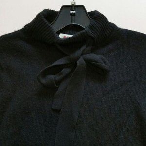 Women’s black vineyard vines sweater with a tie-able neck bow and mock neck. Very classic and clean looking