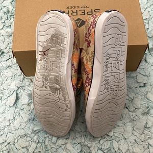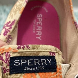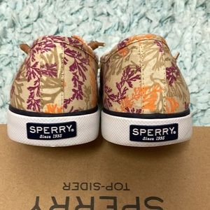 These Sperry Top-Siders Boat Shoes with Coral like Print Size 9.5M they are Very Nice in Like new condition They are gently used (they are in a Sperry Box but not for these shoes) they have leather knotted shoe laces and great rubber soles for good grip please see pics above