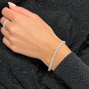 Three Prong Set Round Cut Diamond Tennis Bracelet 14K White Gold 7.03Cttw