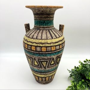 Vintage Italian Lava Glaze Geometric Print Ceramic Clay Pottery Vase MCM Italy