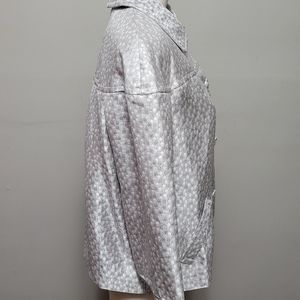 Lane Bryant metallic silver jacquard polka dot blazer size 14