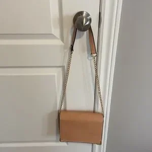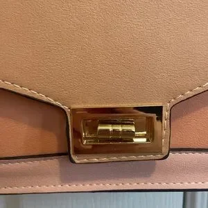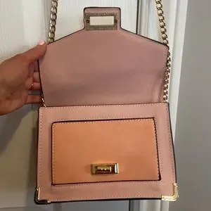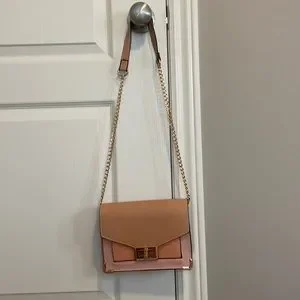 Pink and orange shoulder bag with gold chain. Lightly used - there is some damage to the strap as pictured.