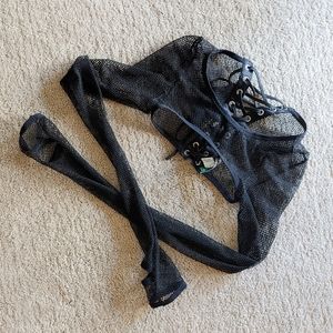 brand new condition! no tags but only worn once. bolero / shrug cut fishnet top with lacing details in the back that are very high quality.