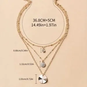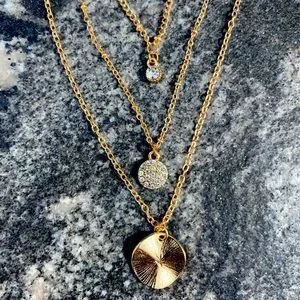 Gold 3 Layered Pendant Necklace with Rhinestones