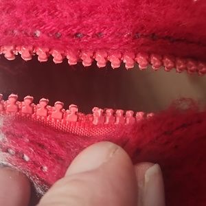 1 Sleeve cuff is a little tighter than the other also 1 piece of the zipper is gone it still functions