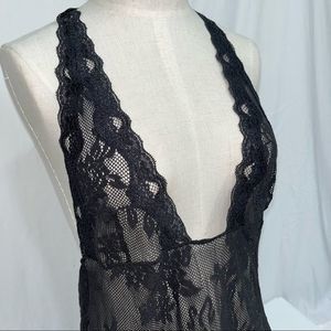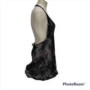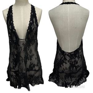 Victoria’s Secret large lingerie slip dress black lace halter
