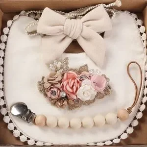 Baby Girl Gift Box | Boho Bib | Pacifier Clip | Baby Bow Headbands