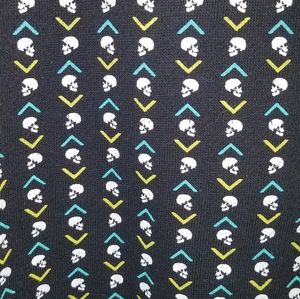 Black hoodie, zip front, two front pockets, drawstring on hood. Ribbed cuffs at wrist and waist.