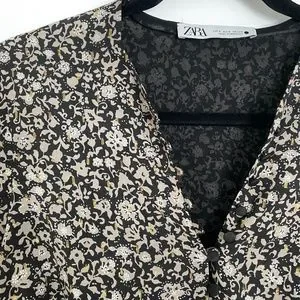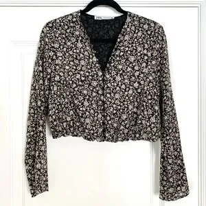 Zara Floral Long Sleeve Button up Crop Blouse - Small