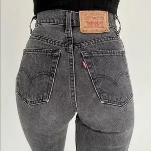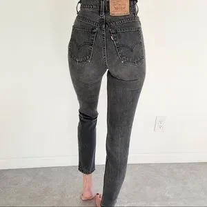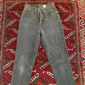 Ultra high rise, slim through hips and thighs, tapered to ankles. Zip closure with button fly. 5 Pocket detail. 100% cotton. Minimal signs of wear, some fading due to age, perfectly worn in! Some scuffing to hems