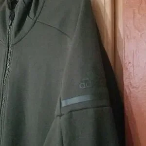 Here is a Adidas Athletics Squad ID Full Zip Hoodie Sweatshirt Jacket Green Size Large. It is in good condition with the exception of some Wear and a minor spot or two inside, but has lots of life left.