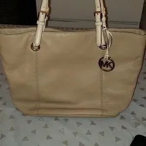 A beige Michael Kors Bag. Great Condition, clean inside. Smoke Free home. See pictures for measurements. Does not have Dustbag.