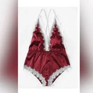 Shein Plus Floral Lace Cutout Satin Teddy Bodysuit Size: 1XL