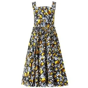 Marni Citrus Full Skirt Midi Dress Square Neck Fit Flare