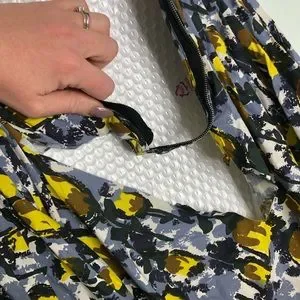 Has a rip in the middle of fabric at bottom of zipper along carefully patch up while replacing the zipper