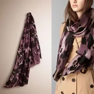 New Burberry Lightweight Check Print Purple Silk Scarf