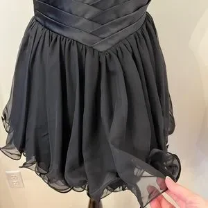 New with tags La Femme Short Black Cocktail dress. This can can also be worn with straps (attached in bag) see all photos. Some of the rhinestones need to be secured, they are not missing just need some fabric glue.