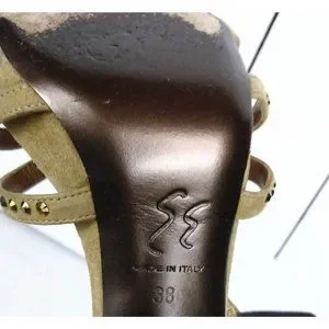 Ernesto Esposito suede jeweled open toe t strap high heel strappy shoe 38