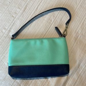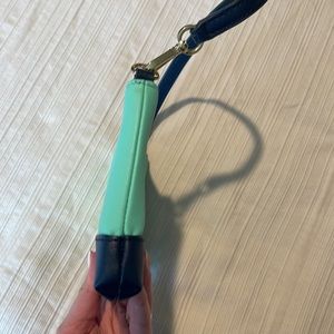 NWOT Banana Republic Synthetic Leather Clutch/Wristlet. Navy Blue and Turquoise with Gold hardware. Beautiful pop of color. Can be unhooked on one side. 2 inner pockets.