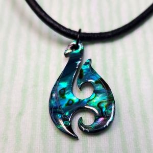 The Fishers Hook Is Green and Blue Paua Maori, Black Back Pendent. Beautiful For Men Or Ladies!