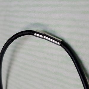 This Black Leather Necklace Has A Silver Magnic Closure.
