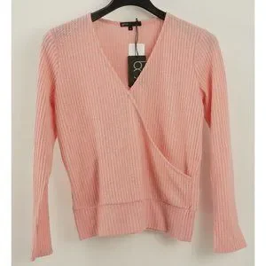 New Gibson Women's Size S Small Blush Brushed Waffle Knit Drape Faux Wrap Surplice V-Neck Top
