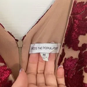 Dress the Population - Karen Plunging Lace Gown - Red - Size M