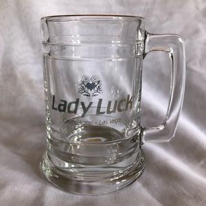 Take home a little bit of Las Vegas history with this set of 4 Lady Luck gold rimmed glass steins.