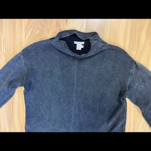 Size M, Carbon 2 Cobalt, grey distressed knit pullover sweater, cowl neckline, laying flat measures approximately 22in across the chest, 25 1/2in from shoulder seam to bottom front of sweater & 24in from shoulder seam to bottom back of sweater, 100% cotton, EUC, no stains or tears to fabric, please see pictures, smoke free home