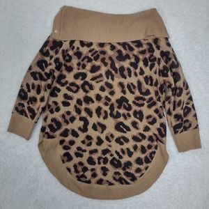 89th+Madison Women's Leopard Print Cowl Neck Sweater Size Medium