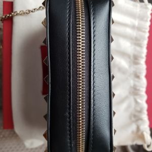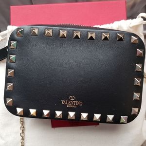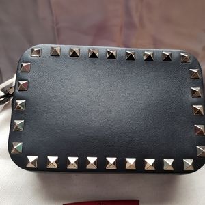 Super cute and luxe mini Valentino rockstud camera bag! Black smooth calfskin with silver studs.