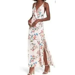 Lush V-neck Surplice Maxi Dress in Mauve Floral NEW