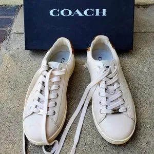 Coach low top leather shoes. Color is light white saddle. Size 7B. Fits 7.5 womens. Worn once. Shoes are in excellent condition! Comes with original box.