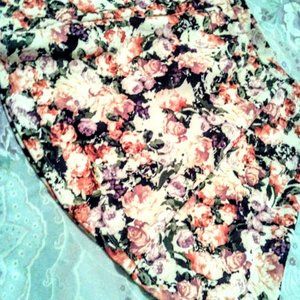 Just a beautiful choice for spring, with body from the neoprene-like fabric to add flounce & flow. Roses & leaves in print look like an impressionist out-of-focus photograph for a neat effect. Stretchy fabric includes the waistband for comfort & fit. Hardly worn, if ever, in pristine condition. SFPF home.